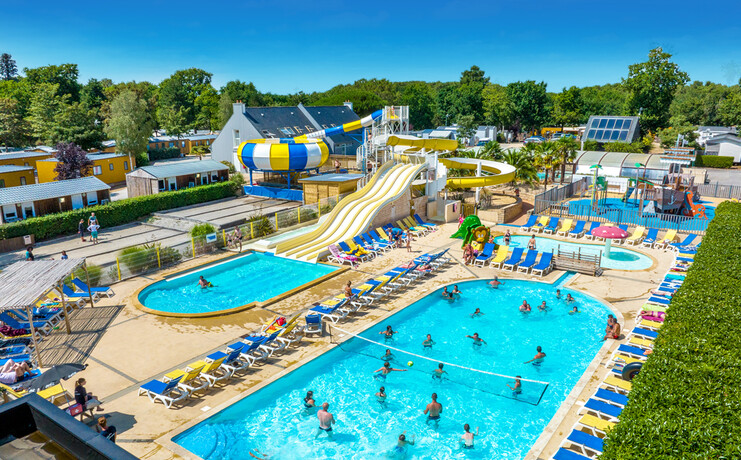 Le camping Le Moustoir dispose d’un bel espace aquatique chauffé avec piscine couverte et chauffée, piscine extérieure, toboggans dont 1 pentagliss 4 pistes et un Spacebowl pour des sensations garanties, 2 pataugeoires (une couverte et une extérieure) et un bain à remous.